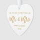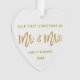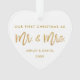 Modern Gold Brush Script Our First Christmas as Mr. and Mrs. White and Gold Heart Ornament