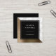 Modern, trendy design features simple white lettering in a black square, against a dramatic background of white marble and gold faux brushed metal foil. Add your contact information on the reverse in white sans serif font on a solid black background.