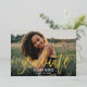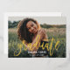 Two sided graduation party invitations feature a photo announcement on the front and a modern and minimalistic elegant script "graduate" overlay in real gold foil with white monogram design. The back of the card features graduation celebration invitation information that can be completely customised for your special graduation event.