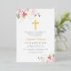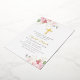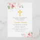 A modern gold foil cross purple floral design boy first communion invitation card. The colours and text can be personalised.