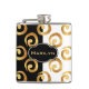 Modern Gold Curls Pattern on Black and White Hip Flask