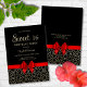 This feminine and classy birthday invitation features an Egypt geometric wedding gold outline and red bow ribbon on a black background. All the text can be customised according to your needs.