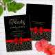 This feminine and classy birthday invitation features an Egypt geometric wedding gold outline and red bow ribbon on a black background. All the text can be customised according to your needs.