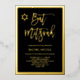 These elegant Bat Mitzvah invitations feature a gold foil border with matching trendy typography and a gold foil Star of David, on a black background.