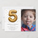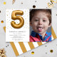 Modern Gold Foil Balloon 5th Birthday Photo Invitation