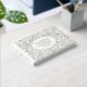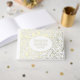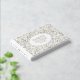 Modern gold foil leaves and frame wedding guest book. This design features a lovely pattern of leaves and your wording all in gold foil in a white frame with gold outline. The back includes the same pattern of gold leaves.