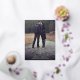 This chic, minimal save the date features simple typography and showcases a large photo of the engaged couple. On the front of the postcard, a full photo appears with a gold foil overlay that reads "Save the Date," along with the couple's names, wedding date, and wedding location. Add additional wedding details (such as the wedding website) to the back of the postcard.