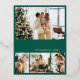 Elegant Calligraphy Minimalist Gold Foil Script Green 4 Photo Collage Merry Christmas Holiday Card. This festive, mimimalist, whimsical four (4) photo holiday card template features a pretty photo collage and says „Merry Christmas”! The „Merry Christmas” greeting text is written in a beautiful hand lettered swirly swash-tail font type in gold on green colour background. On the reverse side with greeting text template with a little heart doodle on white and one horizontal photo template. Pretty greeting card for your family and friends in Christmas Holiday season.