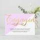 Tell the world that you're engaged with these super trendy announcements featuring a modern pink and white background with chic gold foil script typography.