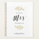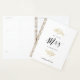 Custom-designed wedding planner notebook featuring "future Mrs" modern hand calligraphy with gold foliage design.