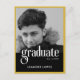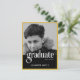 This modern, bold 2025 graduation announcement postcard features one photo of the college or high school graduate. Trendy white typography forms the word "graduate" overlaying the photograph. A chic metallic gold background frames the photo and the text elements. You can adjust the wording on the back of the card to make this either a simple graduation announcement or a grad party invitation. Please note that we've added a black-and-white photo template to the design. If you have a colour photo but would like to keep the look, you can add a black-and-white filter by clicking on "click to customise further".