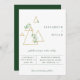 Modern and elegant golden geometric triangles adorned with watercolor greenery branches, wedding invitation. Unique typography design style template in coordinating forest green, can be customised. Backing colour, shown in forest green, can be customised as well.