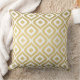 Square accent pillow design features a stylish wavy diamond geometric graphic pattern. Colours are white and gold