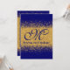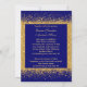 A modern wedding invitation with luxurious gold glitter confetti dissipating into a deep royal blue background. The card reverses to your text within a large blue rectangle framed in gold glitter. You can personalise with your details by clicking the customise link. This is part of a classy wedding suite which includes an envelope, a label, a menu and many more items.