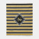 Modern Gold Glitter Black White Stripes Monogram Fleece Blanket