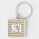 Modern Gold Glitter Chevron Zig Zag Stripe Monogram Initial Key Chain