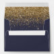 The inside of this elegant modern wedding invitation envelope features a gold faux glitter design on a dark blue background. Customise the back flap with the names of the bride and groom in gold-coloured handwriting script and return address in copperplate font on a dark blue background.