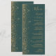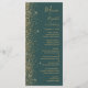 The left-hand edge of this elegant modern wedding menu features a gold faux glitter design. The customisable text combines gold-coloured handwriting, copperplate and italic fonts on a dark green background. The reverse side features a matching green and gold glitter design.