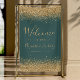 The top and bottom borders of this elegant sign are decorated with gold faux glitter. Customize the text in gold-colored handwriting script and serif fonts on a dark green background.