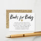 Modern book request invitation insert for your boy and/or girl baby shower. The text on top says "books for baby " in a modern script font with explanation of how you'd like the guests to bring a book for your baby instead of a card. There is a faux gold glitter heart in the middle that matches the pattern of the back of the card.