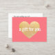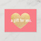 Fun memorable design featuring digital image of gold glitter heart. A super cute gift card in the disguise of a gift certificate for both parties. For additional matching marketing materials, custom design or