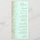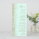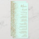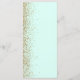 The left-hand edge of this elegant modern wedding menu features a gold faux glitter design. The customizable text combines gold-colored handwriting, copperplate and italic fonts on a mint green background. The reverse side features a matching mint green and gold glitter design.