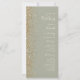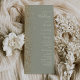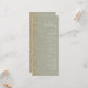 The left-hand edge of this elegant modern wedding program features a gold faux glitter design. The customisable text combines ivory handwriting, copperplate and italic fonts on a sage green background.