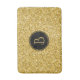 Modern gold glitter texture print with black circle and customisable monogram.