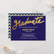 Modern Gold Graduate Typography Navy Blue Chevron Invitation