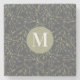 Modern Gold Greenish Yellow Fall White Monogram Stone Coaster