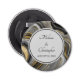 A bottle opener with an abstract design with an agate geode mineral pattern. Gold, grey, white, and black swirl together forming elegant waves of colour.