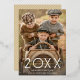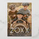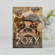 Happy New Year in real gold foil is printed over your favourite photo with your names below. A gold and white stripe design is printed on the back.