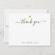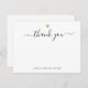 Modern thank you note card with hand lettered swirly script calligraphy alongside a printed gold heart and your custom names below. Space for your personal hand written message of gratitude in between.