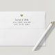 Custom-designed wedding return address envelope featuring modern typography and gold heart design.
