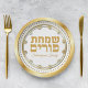Modern Gold Hebrew Simchat Purim Paper Plates