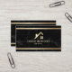 Modern Gold House Logo Real Estate Realtor Black Marble Business Cards.