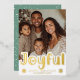 This warm and cheerful holiday design brings a bright touch of gold foil to your family photo. The bold “Joyful” lettering gives the card a lively personality, while the minimalist layout keeps the focus on your picture. The texture paired with metallic shine creates a classic yet modern look that works beautifully for cozy winter portraits. Ideal for families who want a stylish and uplifting Christmas greeting with a clean, contemporary feel.