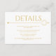 This beautiful wedding enclosure card has a sophisticated design with a gold line of concentric circles and a leaf on the right side and a dot on the left side on a white background. For an extra touch of elegance, the couple's names are featured in gold diagonal pattern on the backside of the card. It is possible to customise the card by adjusting the size of the text to fit the desired amount of space.