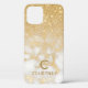 Protect your iphone with this cream and gold marble with gold glitter phone case. It's modern gold font with your first initial and name adds the finishing touch.