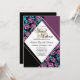 This modern and elegant sweet sixteen birthday party invitation is perfect for the classy and stylish event. It features hand-painted mauve purple and teal green leaves and roses with black and mauve purple triangle corners and faux printed gold diamond border design on a simple white background. It's artsy, unique, pretty, contemporary, and original. Stylise your invites with this hand-painted piece done by the artist of La Femme, Rachel Matheney.
