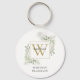 Elegant watercolor greenery eucalptus leaves monogram name keychain featuring a gold monogram initial. Designed by Thisisnotme©