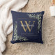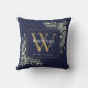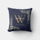 Modern Gold Monogram Greenery Navy Blue Cushion