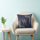 Elegant watercolor greenery monogram name throw pillow featuring a gold monogram initial on a navy blue background. Designed by Thisisnotme©