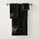 A simple minimalist monogrammed towel set for your bathroom decor. Gold monogram white script, on black. Chic swash script.