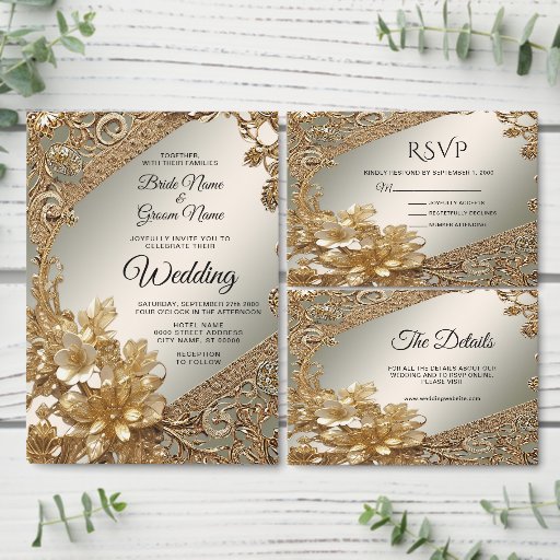 Beautiful Modern Gold Ornate Floral Invitation Belly Band