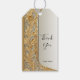 The quality and weight of the paper used was excellent. I love the feminine floral design. I gave received so many compliments on the unique cut of the tag. I also use these tags as a business card. This is my 3rd time ordering this design. I love it! I was very pleased with the printing. I was excited that I was able to print separate messages on both sides of the tag. Very clean look.