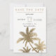 Modern simple faux gold palm trees with simple typography, a trendy and tropical save the date wedding theme on palm tree.