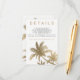 Modern wedding details simple faux gold palm trees with simple typography, a trendy and tropical wedding theme on palm tree leaf. Add your directions, accommodations instructions.