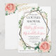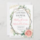 Modern Gold Pink Geometric Couples Shower Invite. These greenery foliage invites will do the trick! this customisable invite features a modern geometric frame with faux gold glitter and black. The borders are adorned with green foliage such as eucalyptus, berries and pink and cream roses flowers. The sides are adorned with faux gold glitter. This makes a great modern foliage invite.