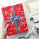 Modern Gold Red Joy Peace Love Snowflake Pattern Wrapping Paper